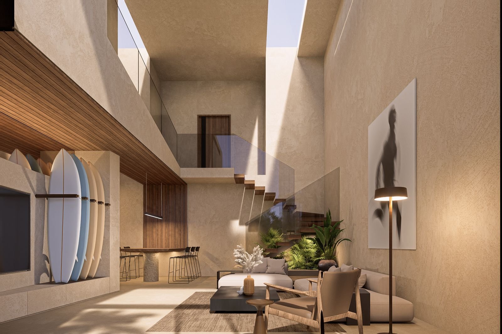 A sleek two-level tropical loft for the modern traveler, with circadian lighting, seamless indoor-outdoor flow, reflective privacy, and a private pool. Steps away is the House of Flow, our on-site wellness hub with sauna, cold plunge, and movement spaces, putting recovery on demand. Built to optimize life in Bali: move, work, connect, reset.